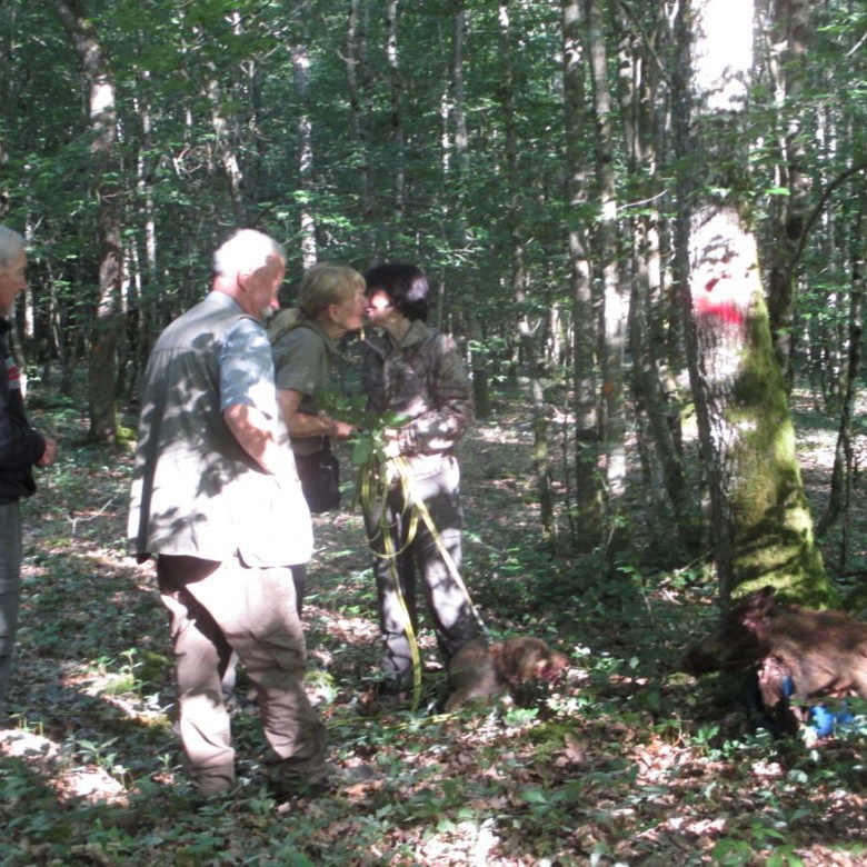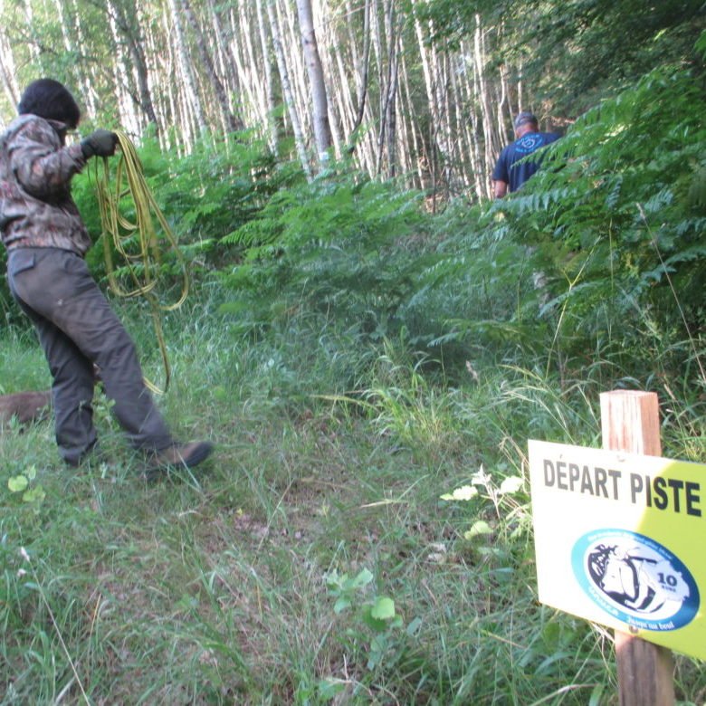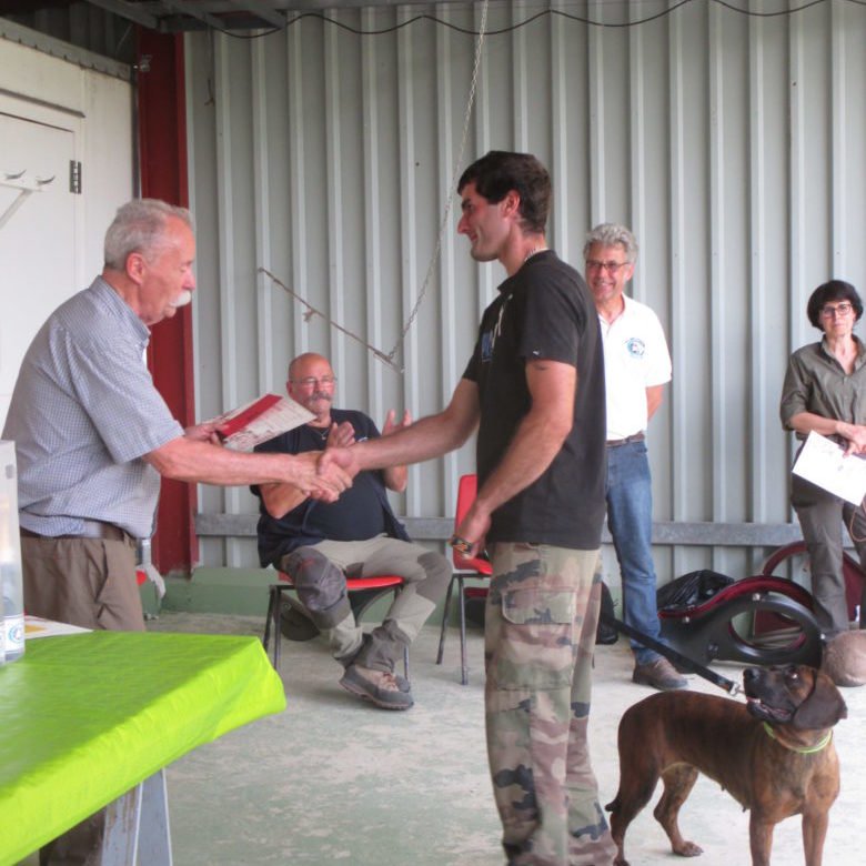 A la suite de ce stage, vient l’acquisition d’un chiot et sa formation. Au cours de la première année, un entrainement hebdomadaire est nécessaire dès le plus jeune âge, pour le préparer à l’épreuve qui lui permettra d’obtenir l’agrément et donc l’autorisation d’officier au naturel par la suite. Cette épreuve consiste , pour le chien, à trouver et suivre une piste tracée au moins 20h plus tôt, pour conduire son propriétaire à une cape de sanglier présentée sur un chevalet . Ceci sur un parcours d’1 KM et comportant 3 angles droits, ainsi que 3 reposées ( simulation d’un endroit ou l’animal se serait couché).